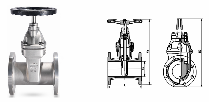 不銹鋼軟密封暗桿閘閥外形結(jié)構(gòu)圖: