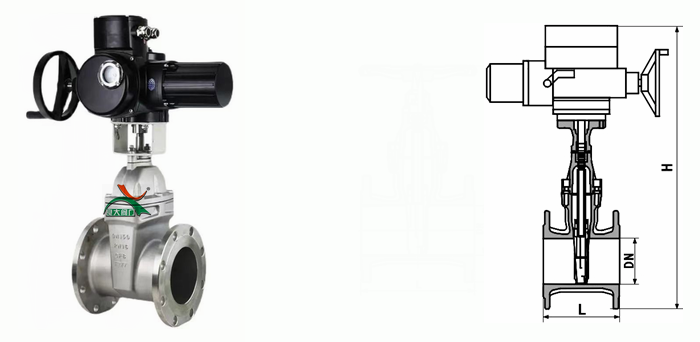 不銹鋼電動(dòng)軟密封閘閥外形結(jié)構(gòu)圖: