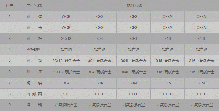 高壓閥套式排污閥零件材料:
