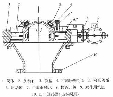 圓頂閥閥芯是一個(gè)球面圓頂,圓頂閥在開關(guān)過程中,閥芯與橡膠密封圈間保持有約2mm的間隙,使閥芯與橡膠密封圈可以以無接觸的方式運(yùn)動(dòng),目的是使閥芯與橡膠密封圈之間不產(chǎn) 生磨擦,減少磨損。圓頂閥的氣動(dòng)執(zhí)行元件為全密封直線或扇形氣缸,直接驅(qū)動(dòng)圓頂閥轉(zhuǎn)動(dòng),有效地防止了灰塵進(jìn)入其中造成磨損、泄漏等現(xiàn)象的發(fā)生。當(dāng)圓頂閥處于關(guān)閉狀態(tài)時(shí),橡膠密封圈充氣、膨脹,緊緊地壓在球面圓頂閥芯上,從而形成一個(gè)非??煽棵芊猸h(huán)帶,阻止了管道內(nèi)物料的流動(dòng)。