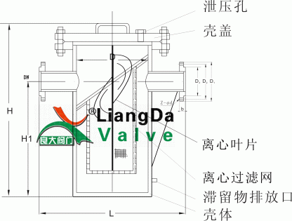 殼體1與壓蓋2按國(guó)際設(shè)計(jì)。裝配前按ZBJ77標(biāo)準(zhǔn)經(jīng)高強(qiáng)度試驗(yàn),內(nèi)裝離心器和濾網(wǎng)。護(hù)帽3內(nèi)有離心器軸向間隙調(diào)整螺釘。進(jìn)出口端法蘭為國(guó)標(biāo),本過(guò)濾器在管線(xiàn)上安裝具有通用性和互換性。取樣塞5為G1/2寸管螺紋,用于取樣被過(guò)濾過(guò)的流體介質(zhì)進(jìn)行分析。如用戶(hù)需要可卸下羅塞裝上截止閥,可使取樣方便(如需要配備定貨時(shí)說(shuō)明)。